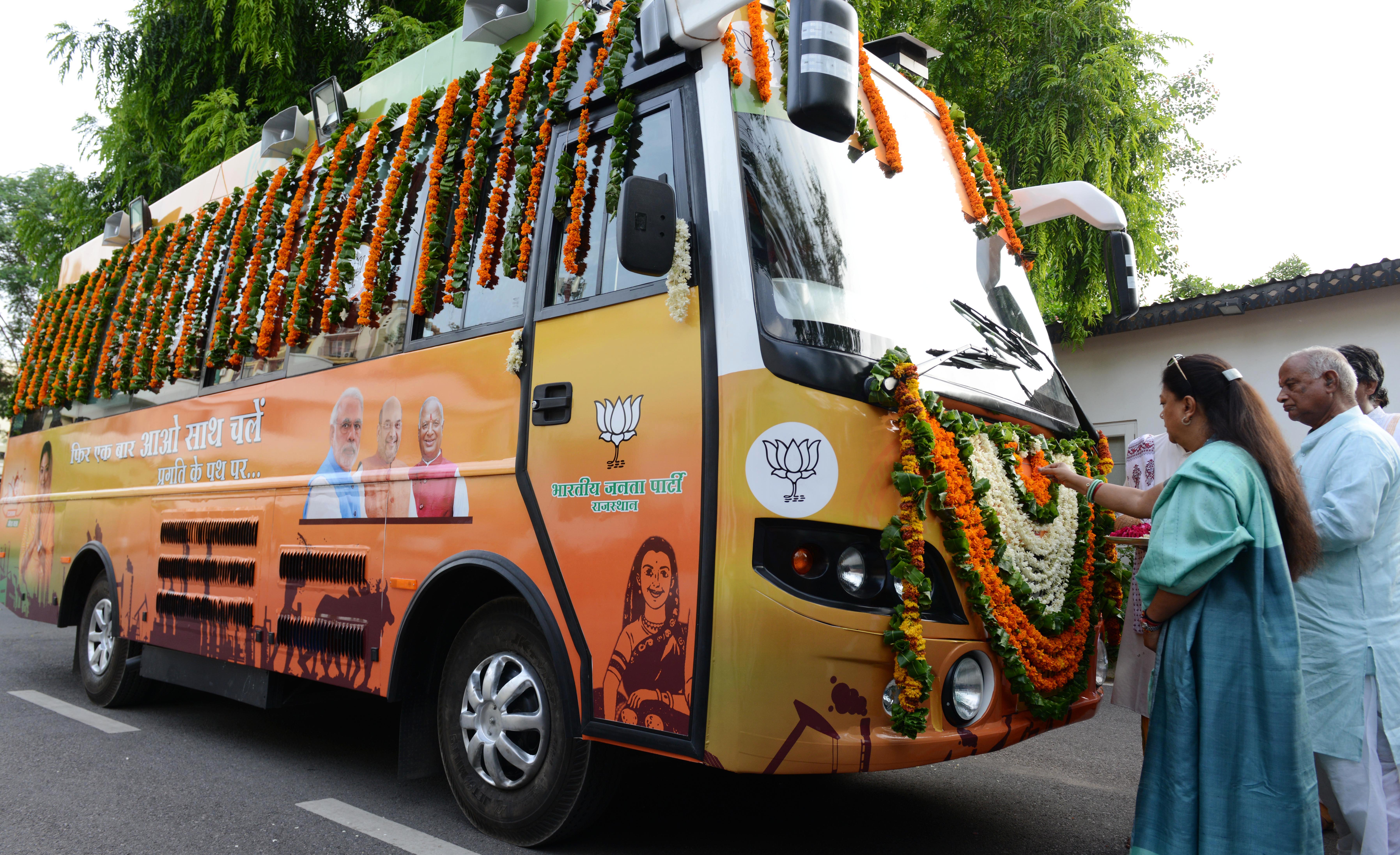 राजे ने प्रदेश भाजपा अध्यक्ष और सांसद मदनलाल सैनी की उपस्थिति में फूल-मालाओं से सजे रथ की विधि-विधान से पूजा करवाई और प्रसाद का वितरण किया। इसके बाद उन्होंने रथ को रवाना किया।