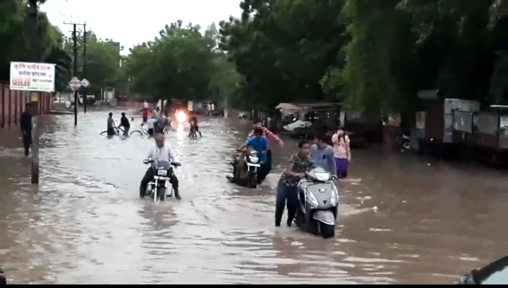 जलभराव की समस्या से निपटने के लिए निगम प्रशासन ने जो कोताही बरती है इसे साफ देखा जा सकता है। इस बार शहर के आधुनिक बसे इलाके भी इस समस्या से बुरी तरह प्रभावित दिखाई दे रहे हैं। शनिवार को हुई थोड़े समय की मूसलाधार बरसात के चलते स्थानीय जेएनवी कॉलोनी के हालात बद्तर हो गए। जहां घुटनों तक भरे पानी ने लोगो की मुश्किलें बढ़ाई वहीं खुले नाले के चैम्बर में गिरकर कई घायल होते देखे गए।