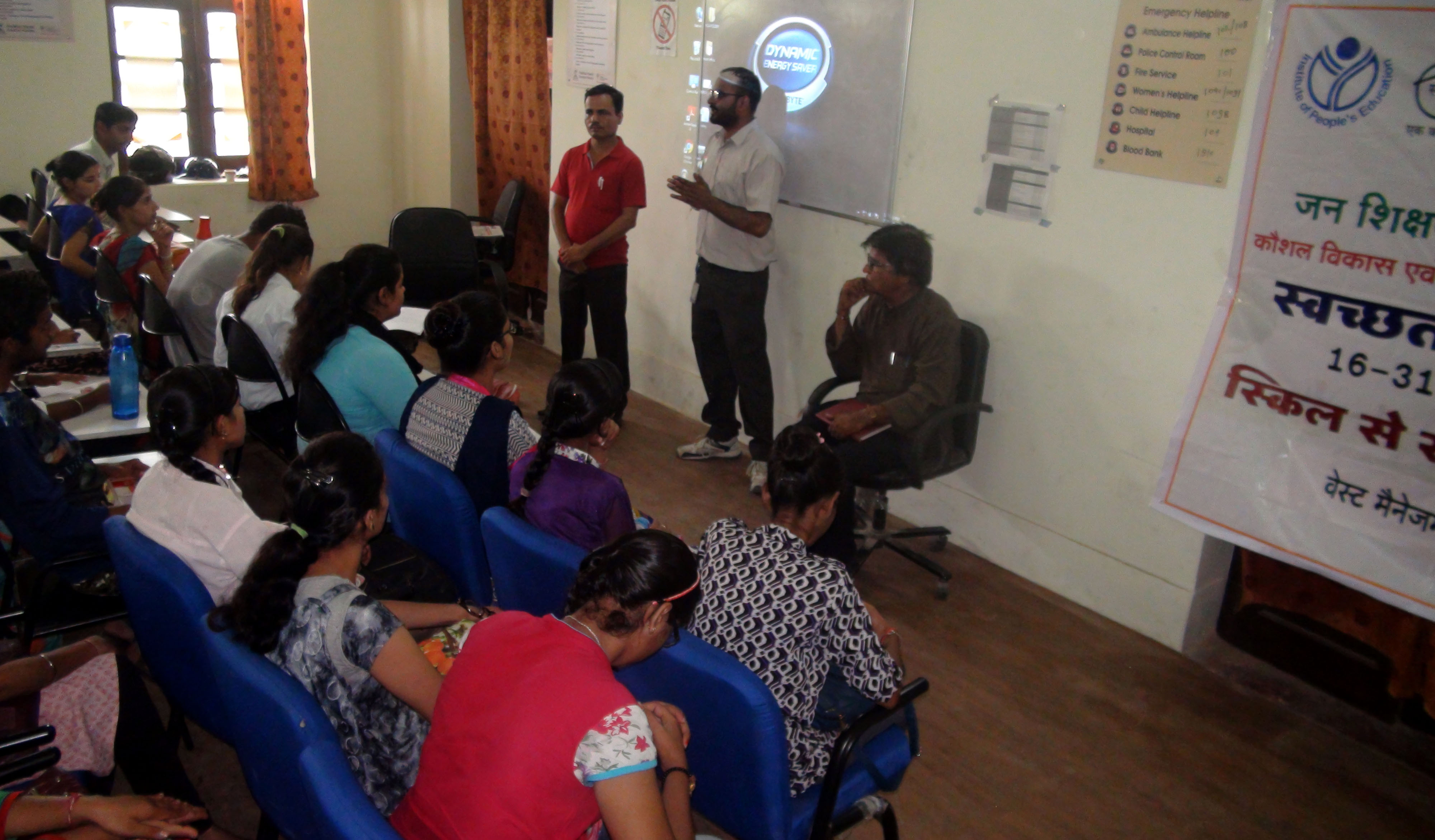 इस अवसर पर जन शिक्षण संस्थान के महेश उपाध्याय ने मंच संचालन करते हुए कार्यक्रम की अवधारणा एवं उद्देश्य पर प्रकाश डाला। संस्थान के ही उमाशंकर आचार्य द्वारा वेस्ट मैनेजमेन्ट मेटेरियल से जुड़ी लघु फिल्मों को प्रोजेक्टर के माध्यम से दिखाया गया। इसके पश्चात स्वच्छता पखवाड़ा से सम्बन्धित स्वस्थता शपथ भी सामूहिक रूप से ली गई। कौशल केन्द्र के सुशील कड़वासरा, प्रशिक्षण समन्वयक रविशंकर कल्ला, प्रशिक्षक रवि बी. जॉर्ज और संदीप कुमार, महेश कुमार ने भी अपनी सहभागिता दी।