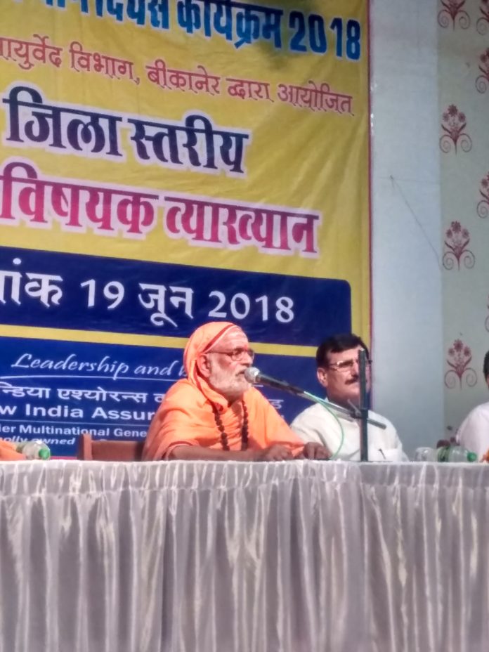 बीकानेर।अन्तरराष्ट्रीय योग दिवस पर आयोजित विभिन्न गतिविधियों के क्रम में मंगलवार को आर्युर्वेद विभाग द्वारा एसपी मेडिकल काॅलेज आॅडिटोरियम में योग विषयक व्याख्यान का आयोजन किया गया।