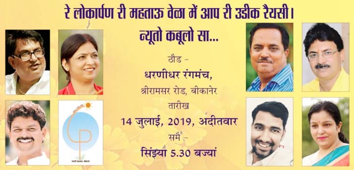 नट साहित्य संस्कृति संस्थान और गायत्री प्रकाशन द्वारा रविवार को राजस्थानी की सात मौलिक कृतियों का लोकार्पण स्थानीय धरणीधर रंगमंच पर होगा। कार्यक्रम की अध्यक्षता समाजसेवी-भामाशाह रामकिसन आचार्य करेंगे। मुख्य अतिथि राष्ट्रीय नाट्य विद्यालय के अध्यक्ष डॉ.अर्जुनदेव चारण होंगे। सातों किताबों पर टिप्पणी कवि-आलोचक प्रमोद कुमार शर्मा की होगी।