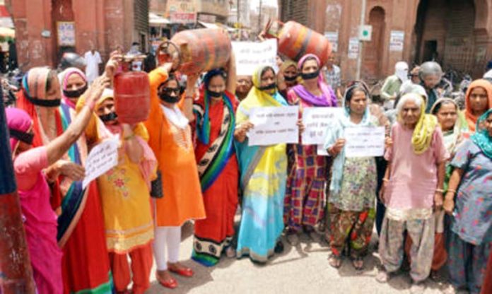 गैस सिलेण्डर के बढ़े दामों का विरोध