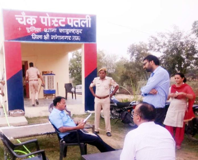 संभागीय आयुक्त ने पतली चैक पोस्ट (राजस्थान) एवं राजपुरा चैक पोस्ट (पंजाब) पर चुनावी तैयारियों का जायजा लेते हुए दोनों राज्यों को जोडऩे वाले चोर रास्तों पर विशेष पैट्रोलिंग के निर्देश दिए। आगामी विधानसभा चुनाव के मद्देेनजर विभिन्न उडऩ दस्तों को विशेष सतर्कता बरतने हेतु उपखण्ड अधिकारी सार्दुलशहर को निर्देशित किया। सीमावर्ती गांवों के भ्रमण के दौरान सरकारी कर्मचारियों को चुनाव को बाधित करने वाली समस्त अपराधिक घटनाओं के प्रति चैकसी बरतते हुए मुस्तैद रहने के निर्देश दिए।