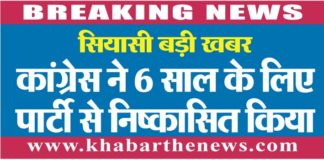 कांग्रेस ने 6 साल के लिए पार्टी से निष्कासित किया