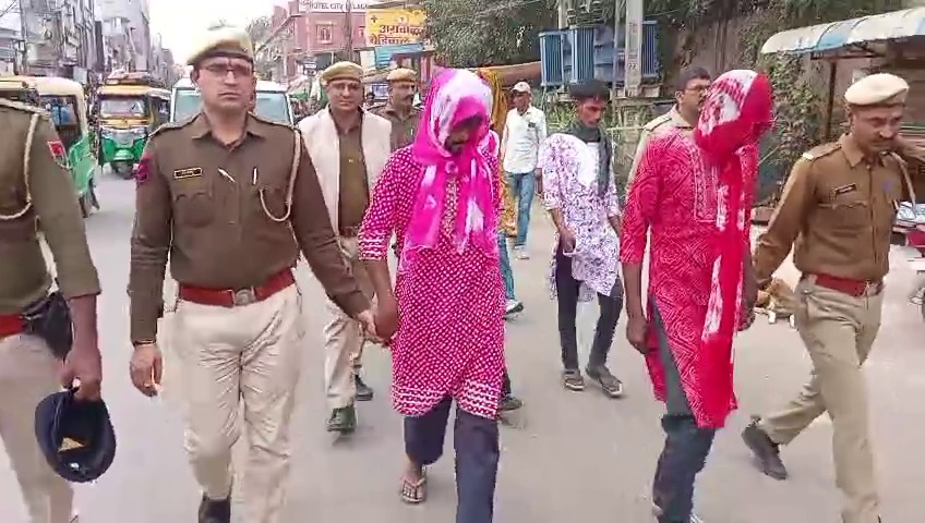 बीकानेर। कोटगेट थाना पुलिस ने 5 आदतन अपराधियों के खिलाफ सख्त कार्रवाई करते हुए थाने से शार्दुलसिंह सर्किल तक परेड करवाई। पांचों आदतन अपराधियों को महिला के कपड़े पहनाकर परेड करवाई गई। परेड के माध्यम से पुलिस ने संदेश दिया की कानून से खिलवाड़ करने वालों के खिलाफ ऐसा ही बर्ताव किया जाएगा।