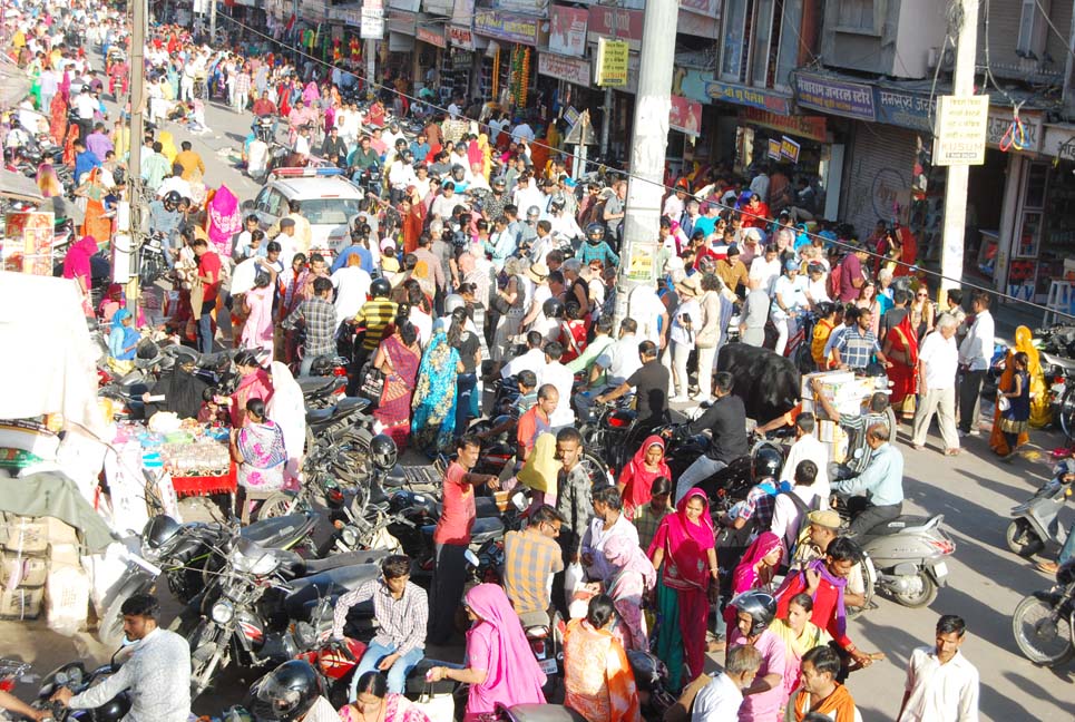 त्योहार के दिनों में भीड़ भरे बाजार में यातायात व्यवस्था पूरी तरह से चौपट नजर आ रही है। केईएम रोड, तोलियासर भैरूजी गली, स्टेशन रोड, दाउजी रोड बदहाल यातायात व्यवस्था के चलते लोग परेशान हो रहे हैं। इतना ही नहीं प्रमुख बाजार में आवारा पशुओं का भी जमावड़ा। यातायात को सुचारू रखने के लिए तैनात यातायात पुलिसकर्मियों को वाहन लेजाने की अनुमति देते पास बांटने से ही फुर्सत नहीं मिल रही है। ऐसे में यातायात व्यवस्था रामभरोसे ही चल रही है।