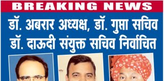 डॉ. अबरार अध्यक्ष, डॉ. गुप्ता सचिव डॉ. दाऊदी संयुक्त सचिव निर्वाचित